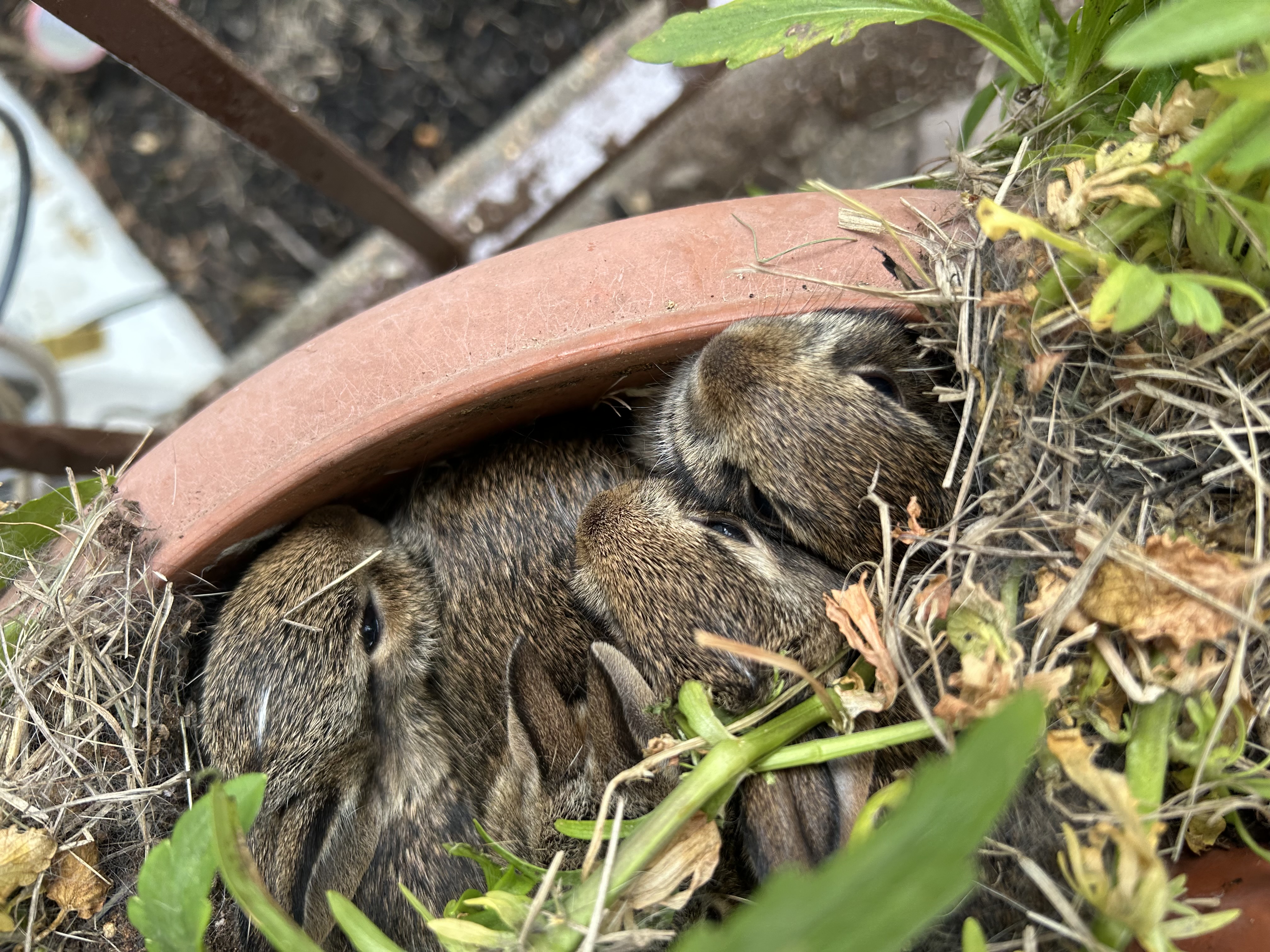 baby bunnies in Linda's flower pot